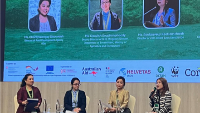 During the panel discussion, Ms. Kaneka Keo, the Climate Resilience Lead of Oxfam’s Mekong Inclusion Project phase 3 emphasized the critical role civil society organizations (CSOs) play in reinforcing policy commitments and monitoring government pledges made at platforms such as COP and the ASEAN Summit. While CSOs may not always have a seat at the negotiation table alongside the policymakers, their influence remains significant at the national level through strategic engagement. To drive meaningful change, CSOs must clearly understand the policy landscape identifying the right moments and mechanisms to exert influence effectively. This calls for building stronger capacity, collaboration, and evidence-based advocacy so CSOs can shape climate and GEDSI agendas where it matters most.