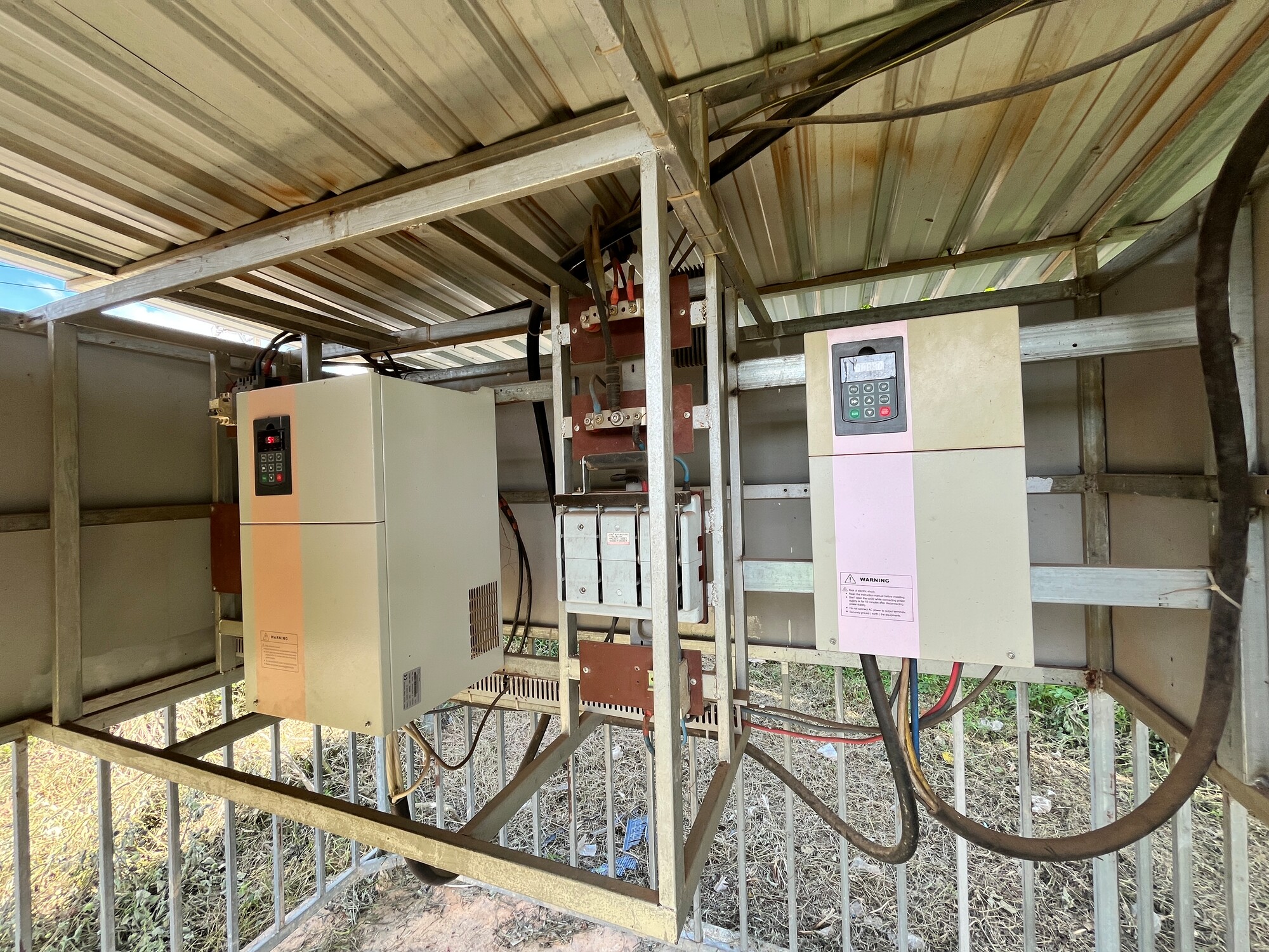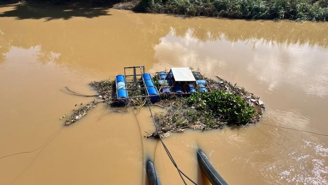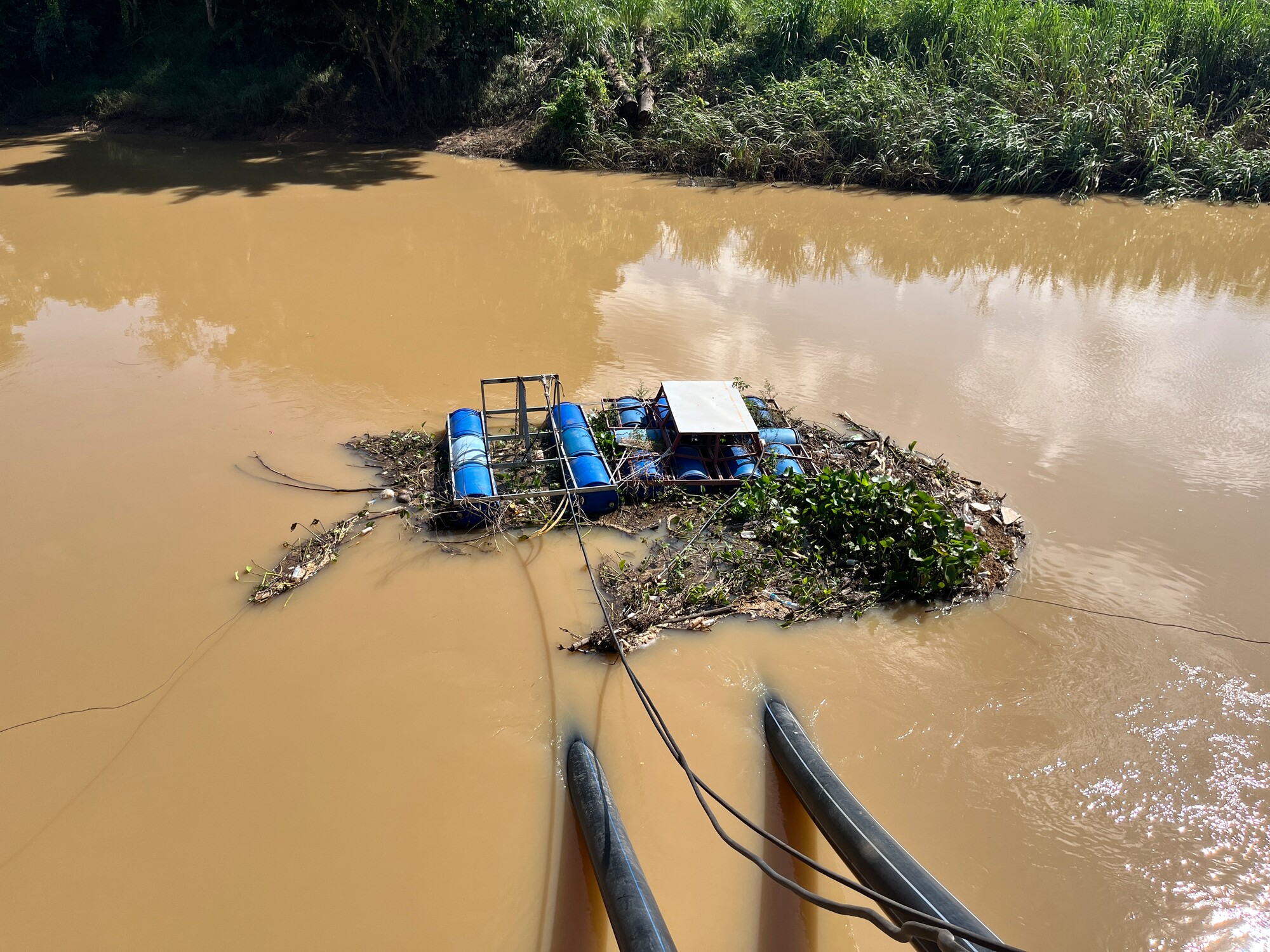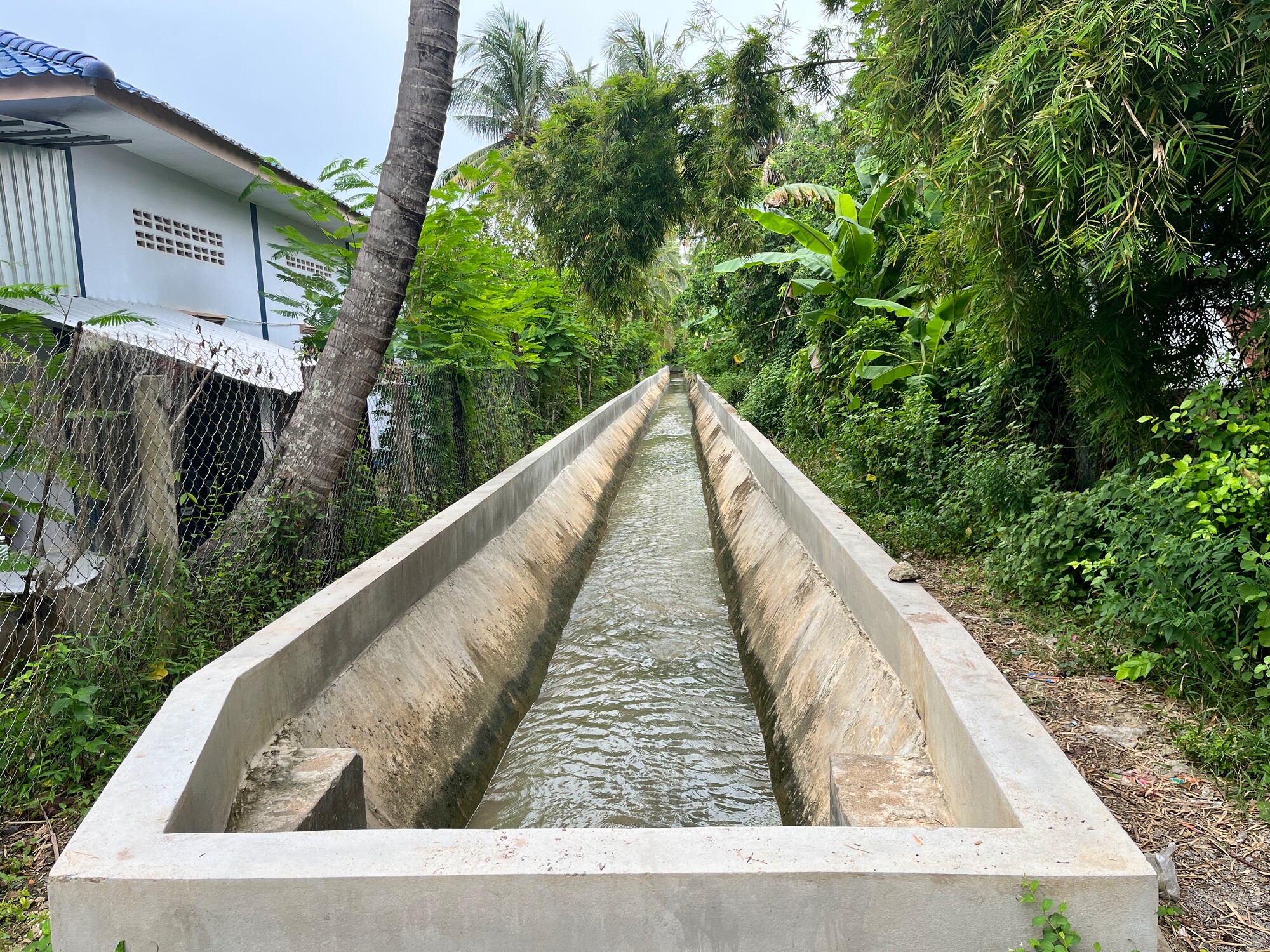 A few kilometers from the water pump station, solar panels line a reservoir that the commune hopes to use as a water source during droughts. Commune members say additional infrastructure investments are needed to make this possible. Photo by Vin Aranas/I-JET